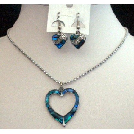 Trendy & Gorgeous Necklace Set in Dyed Dark Blue Mother Shell Heart Pendant Rhodium Plated Chain with Pendant in Dark Dyed Blue Mother Shell & earrings. Necklace Measures 17 inches long with lobster claw clasp & adjustable. Pendant measures 1 to 1 1/2 inches & earrings measures 3/4 inches. Beautifully crafted & self design in Blue Mother Shell. This sparkly Necklace Set We guarantee for the quality even if our products are reasonable as you are dealing direct with factory.You can buy another Heart earrings our item # u063 This Necklace Set would make a lovely gift or great addition for your own jewelry wardrobe!