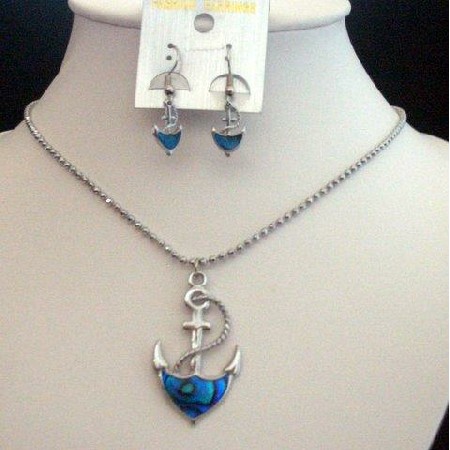 Trendy & Gorgeous Necklace Set in Dyed Dark Blue Mother Shell Anchor Pendant Rhodium Plated Chain with Pendant in Dark Dyed Blue Mother Shell & earrings. Necklace Measures 17 inches long with lobster claw clasp & adjustable. Pendant measures 1 to 1 1/2 inches & earrings measures 3/4 inches. Beautifully crafted & self design in Blue Mother Shell. This sparkly Necklace Set We guarantee for the quality even if our products are reasonable as you are dealing direct with factory.This Necklace Set would make a lovely gift or great addition for your own jewelry wardrobe!