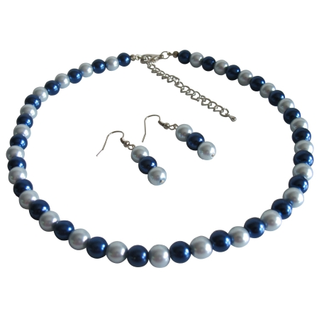 Sophisticated Necklace Set Adorned w/ Lite & Dark Dark & Lite Blue Pearls Gorgeous Jewelry Set