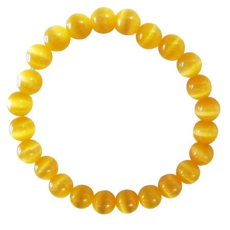 The Cats-Eye stone exhibits chatoyancy which is a breathtaking quality Saffron Cat eye bracelets 8mm is exposed to light at different angles. Jazz up your clothing with this stylish beaded Saffron Cats Eye ensemble! Versatile design is combined with splendor as graceful beautiful stretchable bracelet in this simply stunning bracelet.
