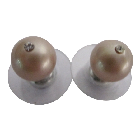Swarovski Champagne Pearl 10mm Stud Earrings Swarovski Pearl 10mm Surgical Post Stud w/ CZ In Middle Pearl