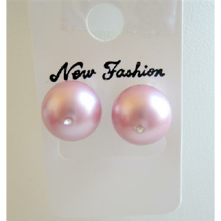 Cubic Zircon Mauve Pearl Stud Earrings Swarovski 10mm Pearl Surgical Post Stud Earrings