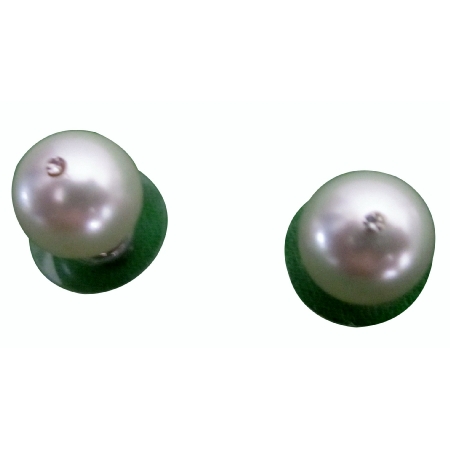 White Pearl 10mm Stud Earrings Swarovski 10mm White Pearl w/ CZ In The Middle Of Pearl