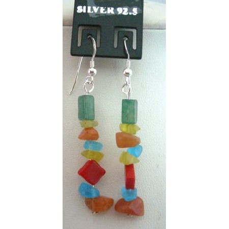 Fabulous Collections of Handcrafted Custom Earrings with Multi Colored Stone Chip all accented in Sterling Silver 92.5 French Wire beautiful earrings. Beautifully crafted & Very lovely design Earrings in Multi Colored Stone Chip. This Sparkly Earrings are Pierced. This Earrings would make a lovely gift or great addition for your own jewelry wardrobe 1 3/4 inches long