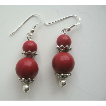 Coral makes a natural & bold fashion statement! Versatile design is combined gracefully with beauty & splendor to form these stylish Two Red Coral Stone Beads with Daisy Spacer & Silver Bead Earrings. A piece sure to add that special touch to any outfit. Fabulous Collections of Handcrafted Custom Earrings.
