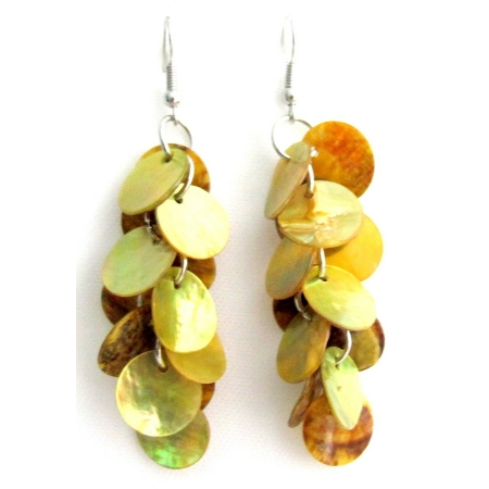 The Features Lime Yellow Round Mop Shell Dangle Earrings accented in Antique Silver Chandelier Earrings which is unique attractiveness & fashionable flair to these Beautiful shell Earrings.