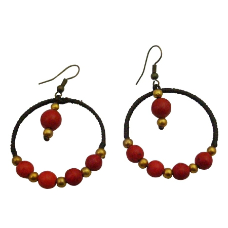 The most flattering of Earrings styles wax cord woven on the wire in round shape with Coral & Golden beads alternative. This earrings work well day into evening dress down or up an earthy luxe feel brighten the face & dangling earrings visually elongate the neck dress up a casual outfit & create a smart pulled together look. This earring buying guide is designed to help you sort through jewelry options with confidence.