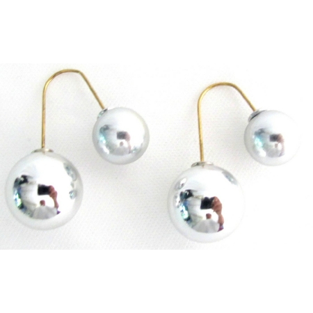 Silver Pearl Double Sided Dangling Earrings. These earrings are highly versatile & delicate. Would be a great supplement to any look day to night inspired by the gorgeously dramatic Silver pearl earrings two pearls dangling. .