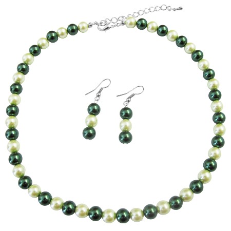 Bridal Bridesmaid Green Pearls Lite & Dark Green Pearls Necklace Set