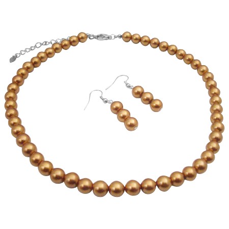 Bridal Bridesmaid Jewelry Bronze Brown Pearls Necklace Stud Earrings